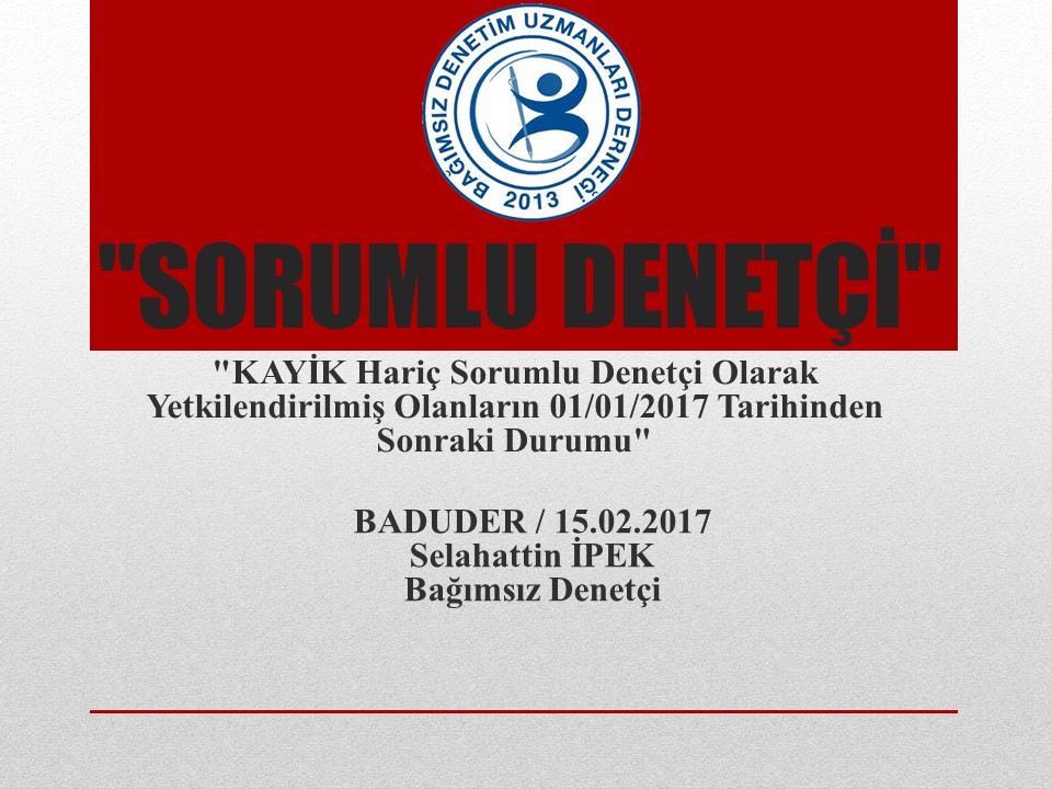Bağımsız Denetim Yönetmeliğinin Geçici 1/4-ç Maddesine Göre KAYİK Hariç Sorumlu Denetçi Olarak Yetkilendirilmiş Olanların 01/01/2017 Tarihinden sonraki durumunu oluşturmakta ve tüm bağımsız denetçileri ilgilendirmektedir. Hal böyle olunca, tabiri caiz ise bir açıklama yapmak zarureti doğmuştur.